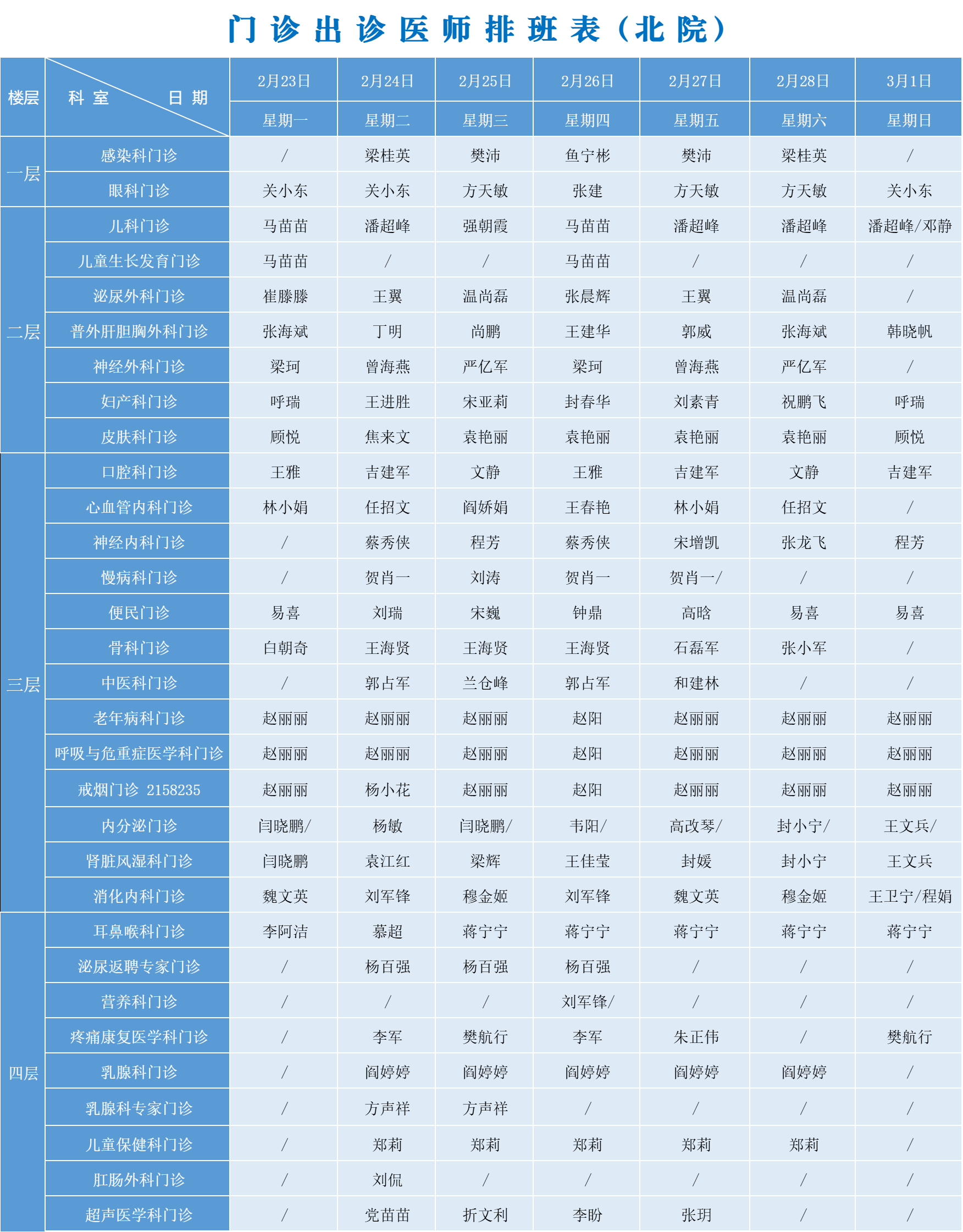 出诊信息 (2026年02月26日--2026年03月04日)