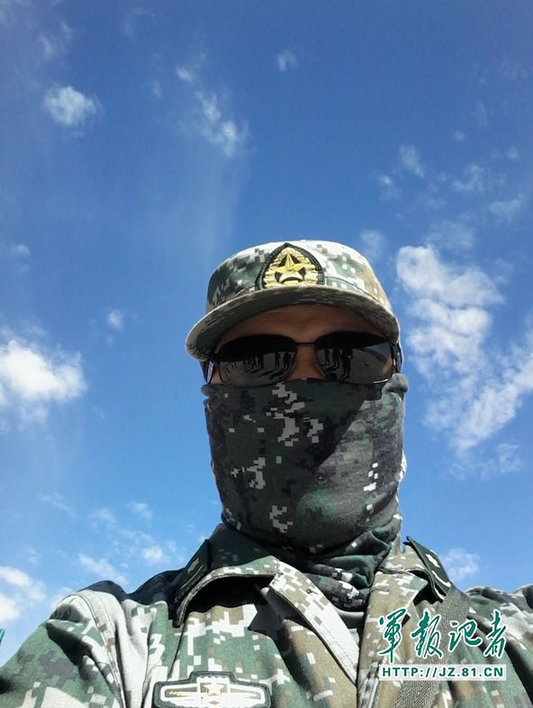 任彦顺在新疆军区某部任军医外出巡诊,因风沙太大所以戴上了防护面具